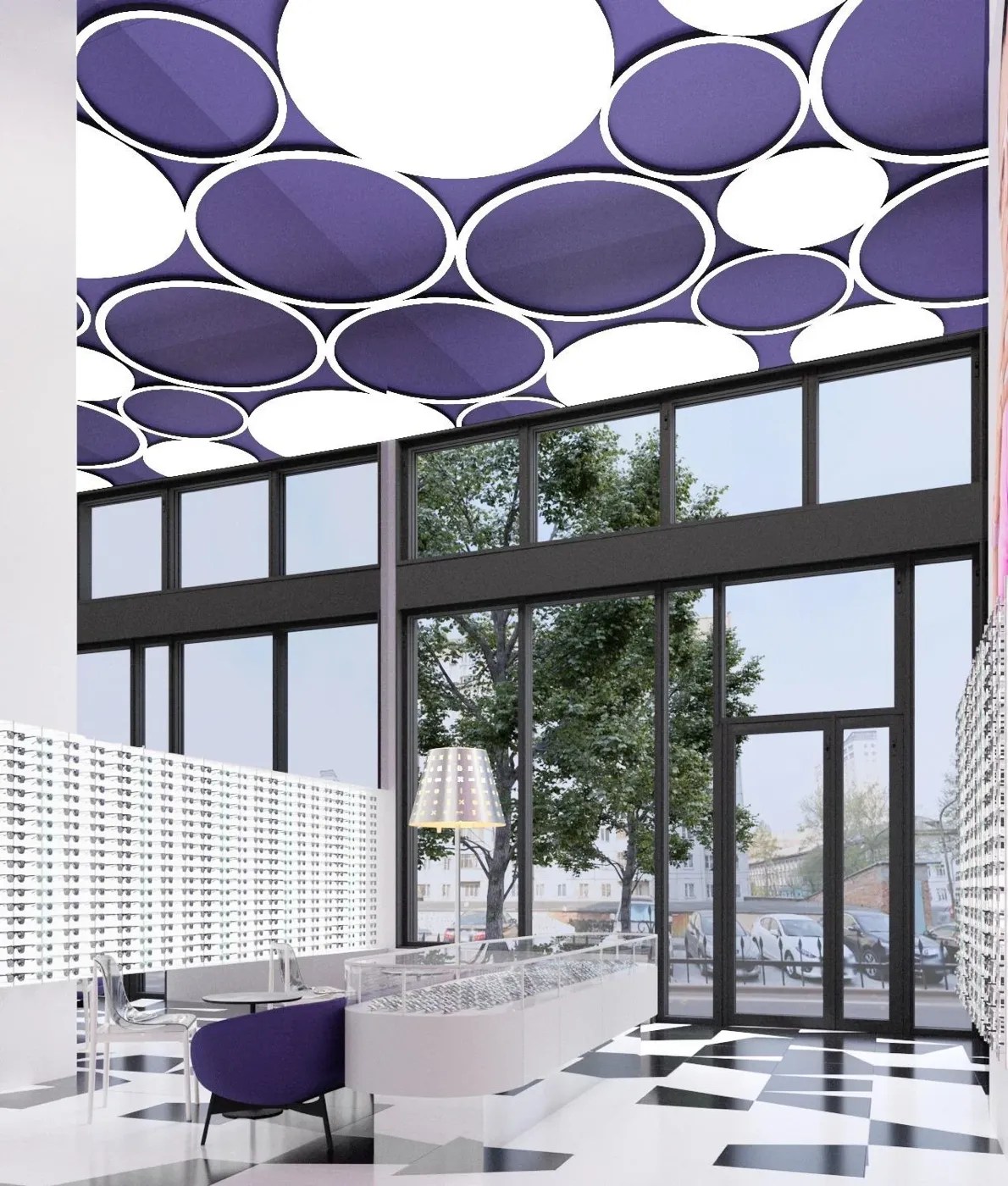Современный магазин оптики с лаконичным дизайном и удобной планировкой. Продуманное освещение и минималистичный интерьер.